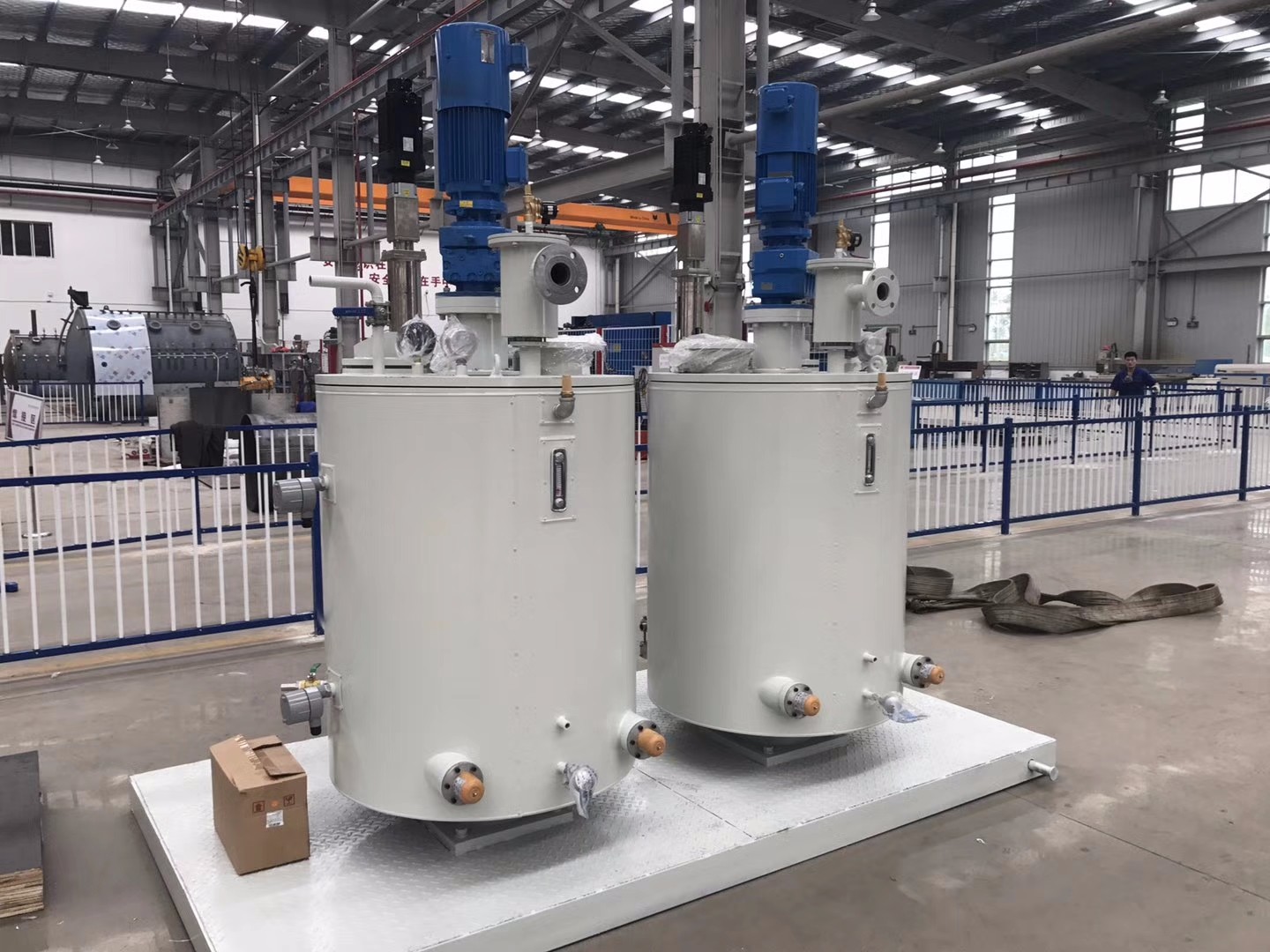 鹽城化工機(jī)械廠訂購的兩臺Rf77-23.58-yvp2.2變頻電機(jī) ,配套4KW變頻器,另處還有兩臺伺服專用行星減速機(jī),我司已順利交付并成功裝配在真空攪拌罐上。